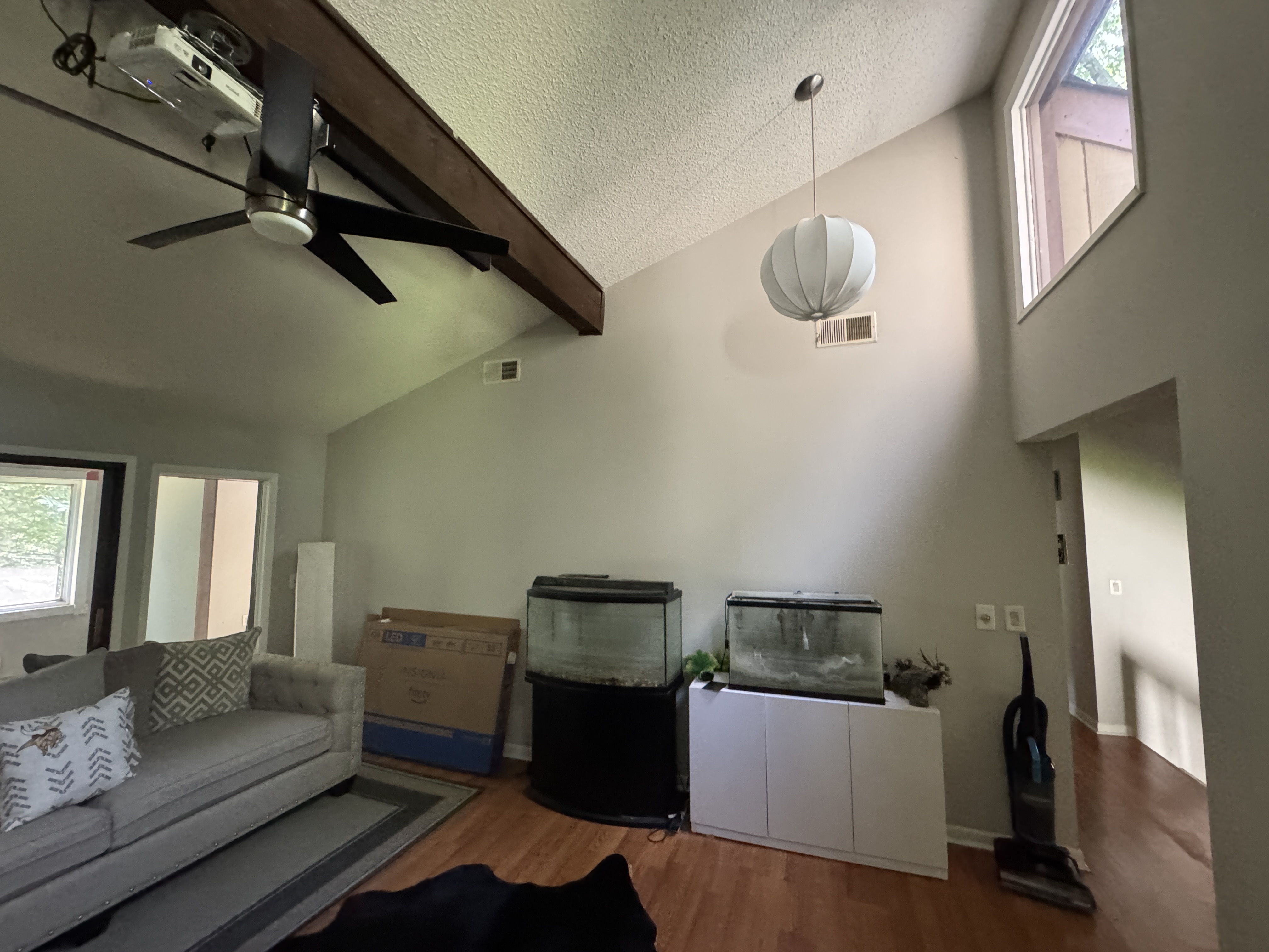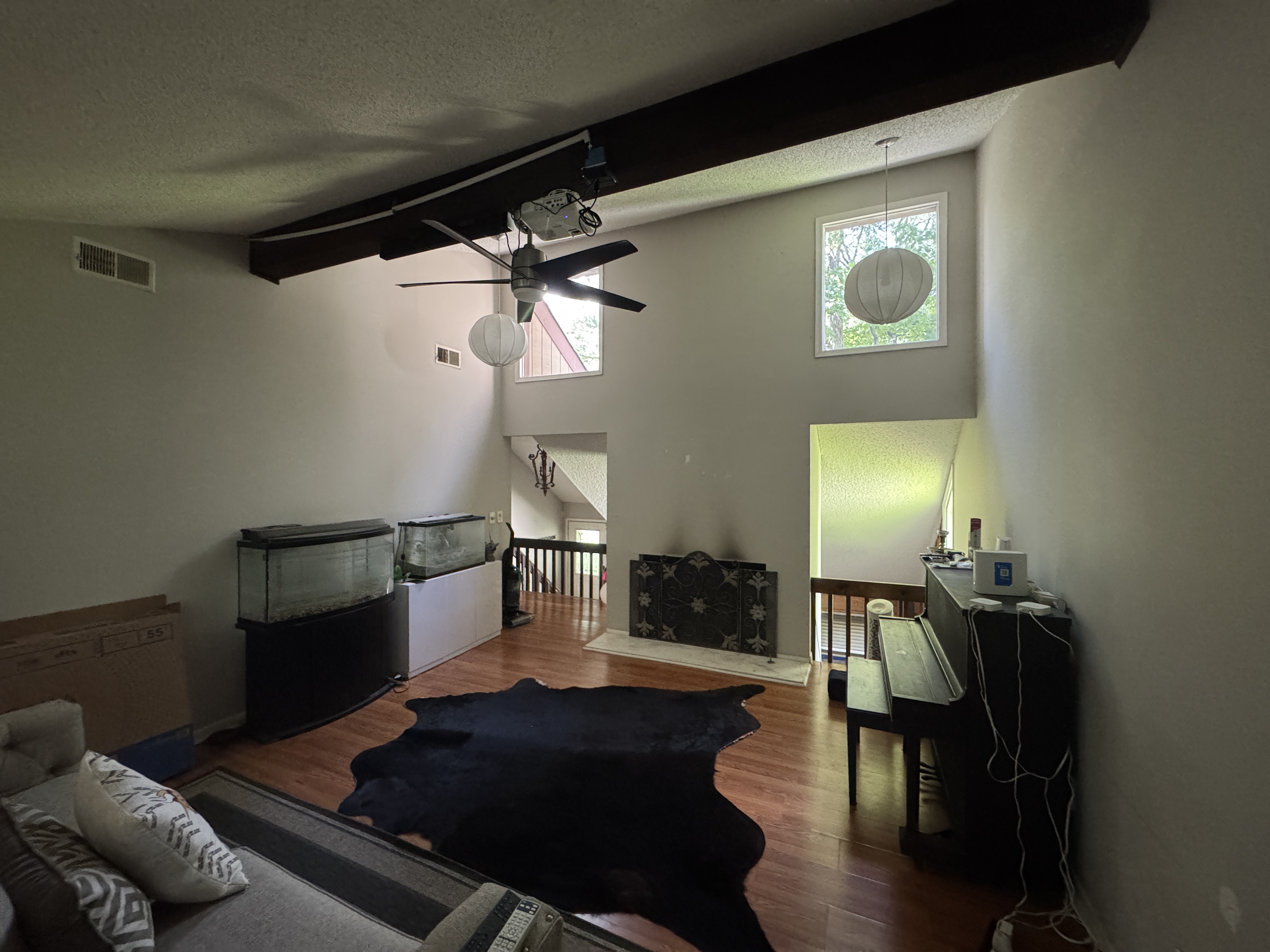 House needs paint & some areas in the living room needs drywall repair looks like a leak happened & landscaping needs & pressure wash the outside of the house & interior paint job is highly suggested.